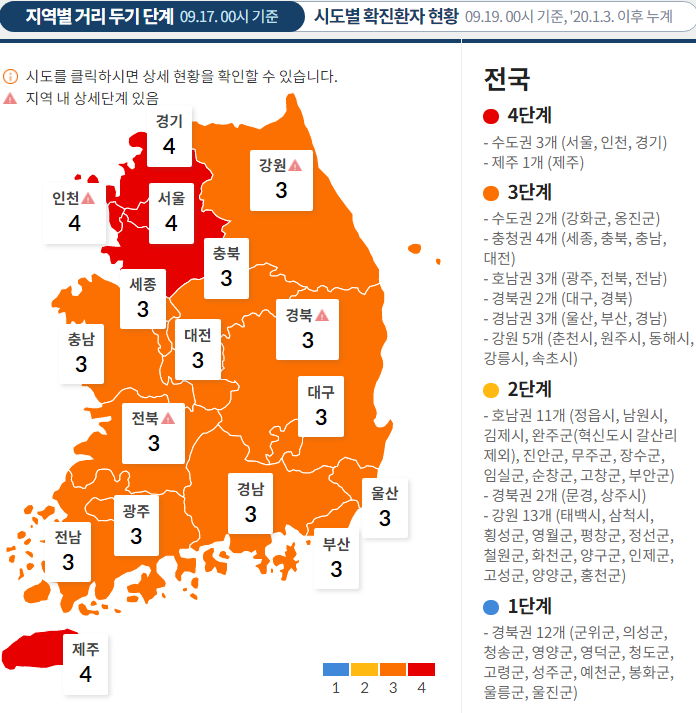 집단발병(확진자)인 경우를 제외하면, 이제는 어느 정도 인구비례, 이동량비례, 인구밀도비례하는 것 같습니다.