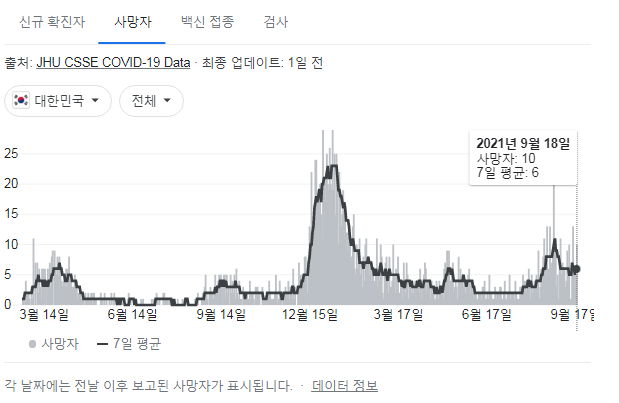 | 코로나19 집계(2021.9.20. 0시기준)/:/ 1605명/:/ 예방접종 이상반응 통계 (0) | 2021.09.20 |