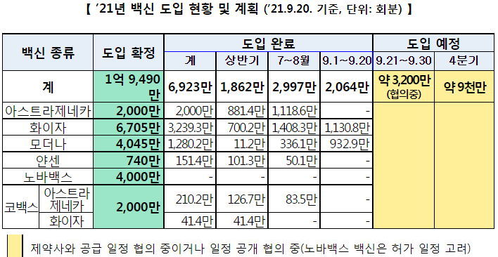 지금은 모더나가 제일 많습니다. 10월 1차 접종백신도 모더나로 잡혀 있습니다. AZ와 화이자는 2차접종용인 듯.
