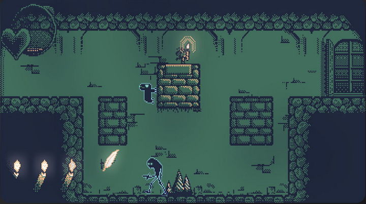 8비트 애플게임을 상상하게 하는, 올드 도트 그래픽이 특징.