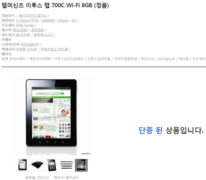 웹머신즈 이투스 탭 700C Wi-Fi 8GB (정품) : 다나와 가격비교