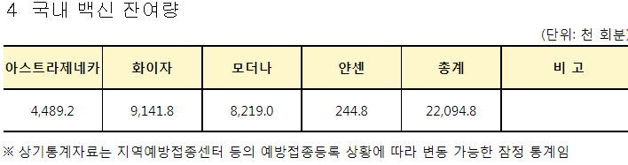 백신은 화이자가 새로 들어온 듯.