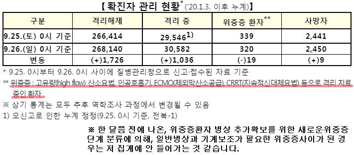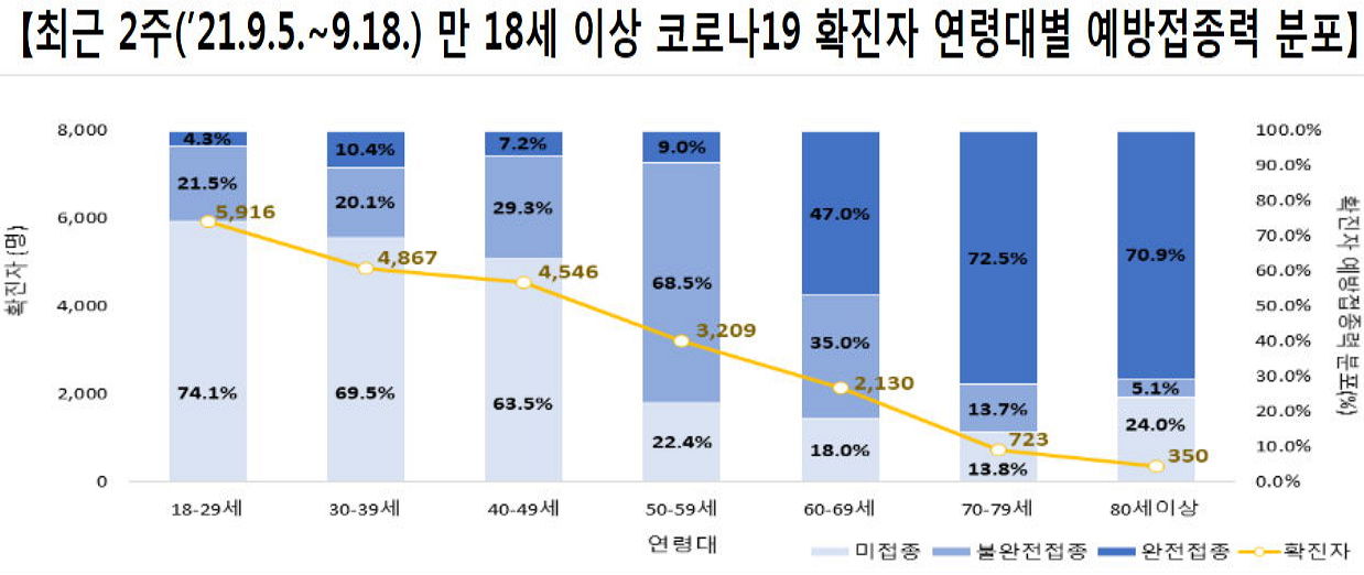 그런데, 지금 분위기로는 10월말까지는 이대로 갈 것 같습니다. 그때가 돼야 추석의 여파가 완전히 사그라들고, 예방접종을 완전이 마친(2차까지 있으면 2차맞은) 인구비율이 70%가 될 것이라며 '위드코로나'는 그때를 바란다고 발표한 적 있습니다.