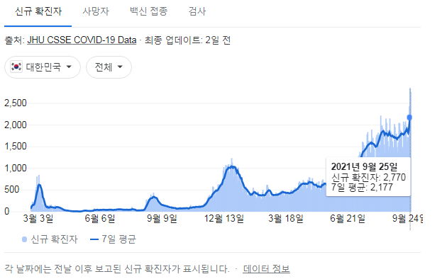 아래 자료의 출처는 정부 사이트, 네이버, 구글입니다. 구글그래프와 복지부사이트는 조금 다를 수 있습니다.