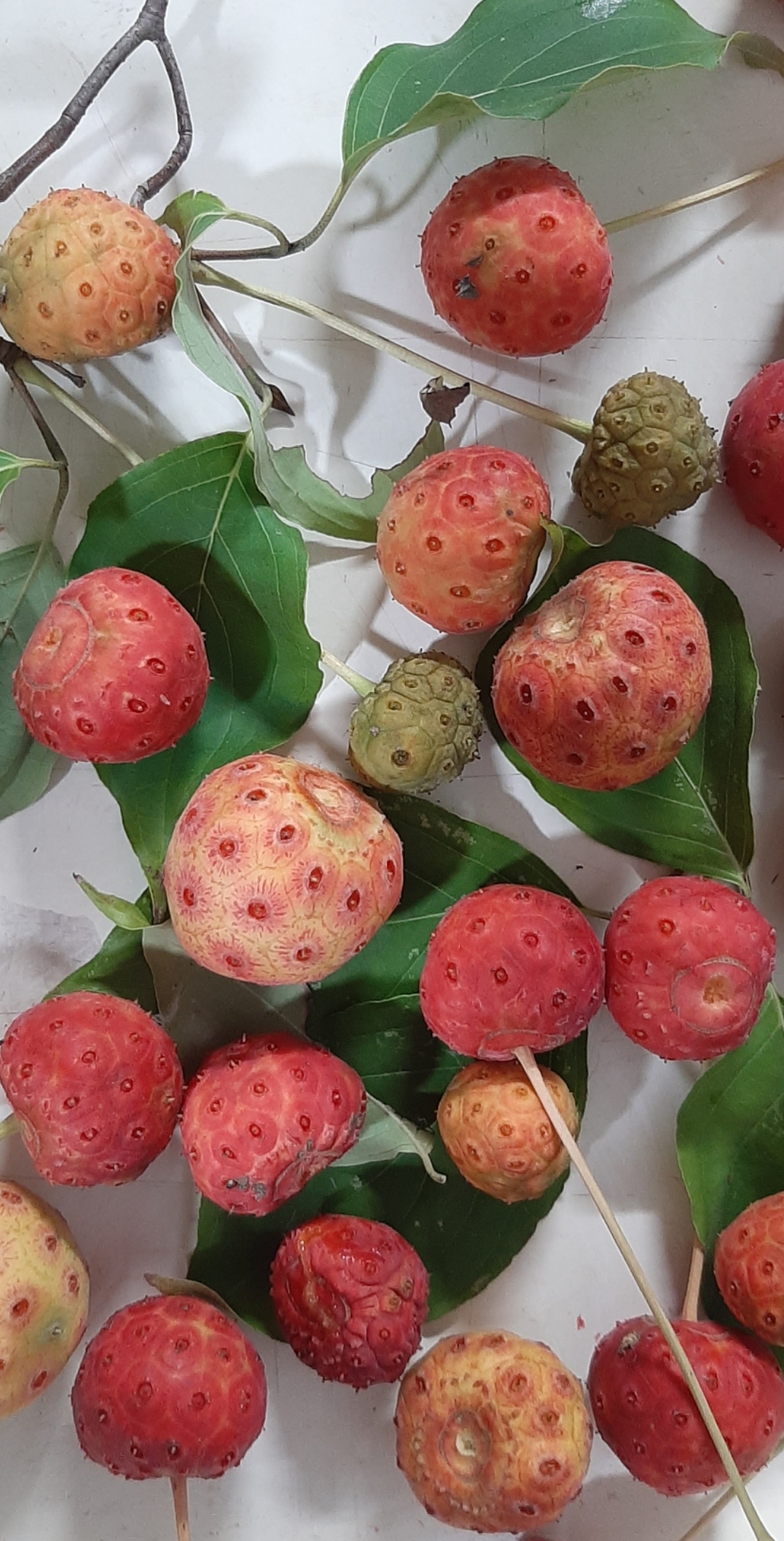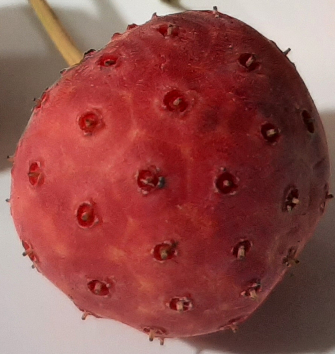저 자루같은 열매 속에는 씨가 많고(덜 여문 씨는 깨물어도 쓰지는 않네요. 여문 씨는 백년초씨처럼 단단한 느낌이니 치아주의) 과육은 물기가 많지만 맛은 별로 달지 않습니다(단맛으로 먹는 과일은 아닙니다). 좀 덜 익은 열매는 새콤한 기(구연산맛)가 약간 있습니다.