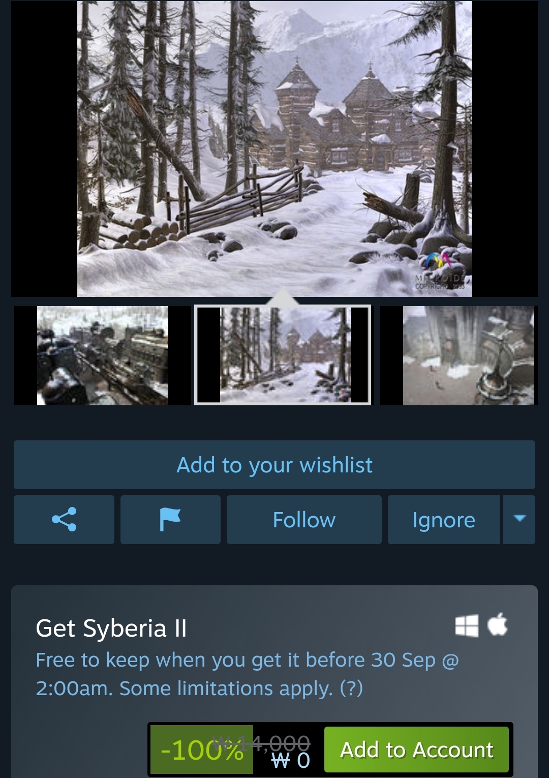 Save 100% on Syberia II on Steam