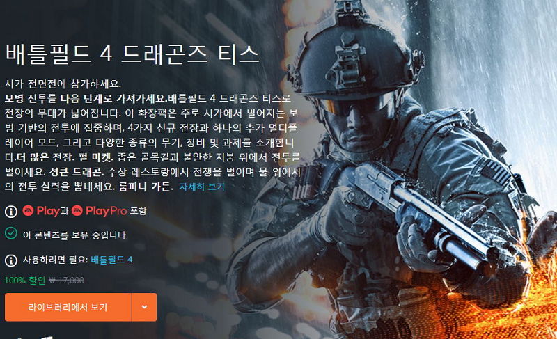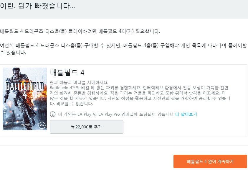 각각 확장팩이므로, 배틀필드4, 배틀필드1 본게임이 필요합니다.