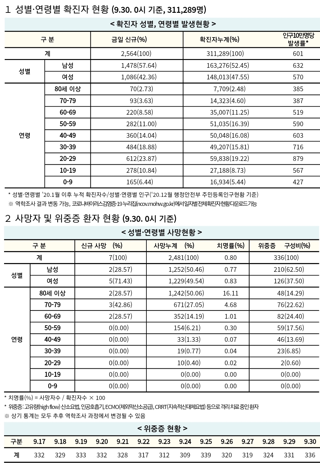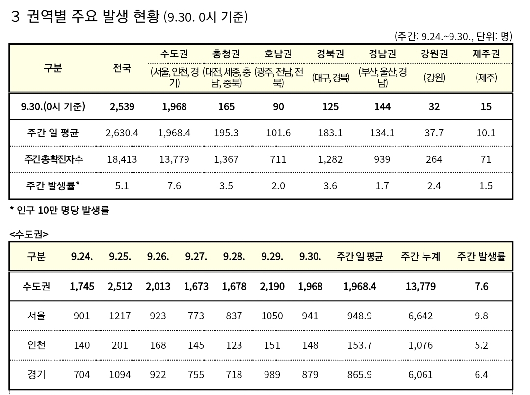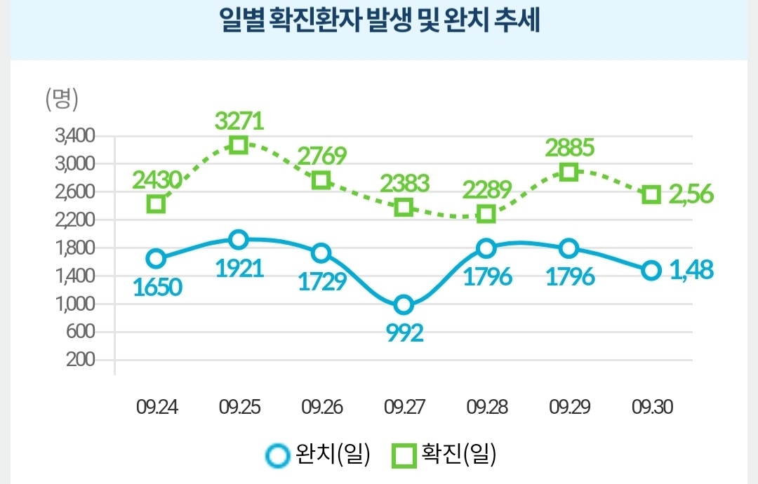 코로나19 집계(2021.9.30. 0시기준): 2564명/:/ 10월 접종일정, 접종증명서 위조금지 본문