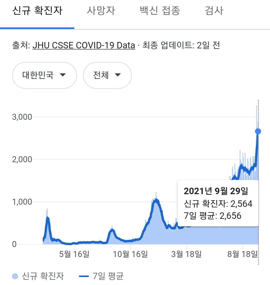 | 코로나19 집계(2021.10.2. 0시기준): 2248명 (0) | 2021.10.02 |