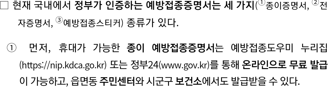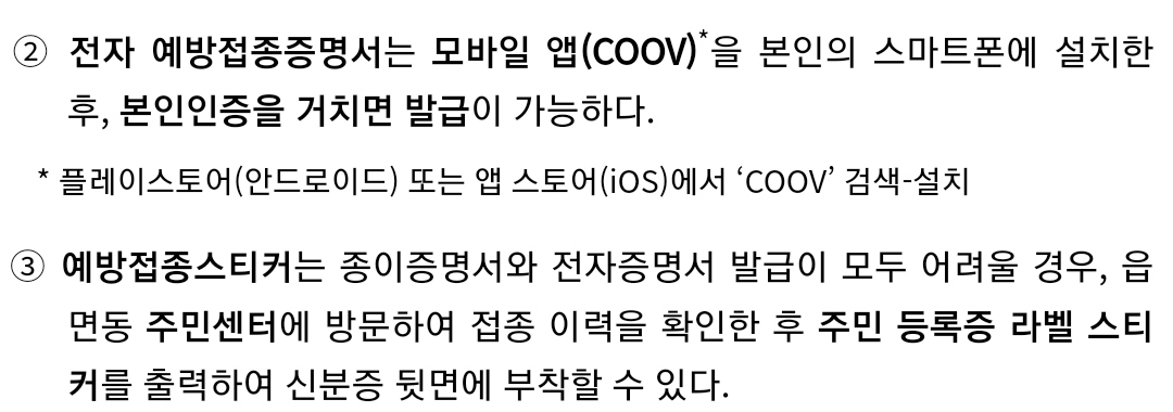 예방접종완료 증명서를 위조하지 말라는 경고.
