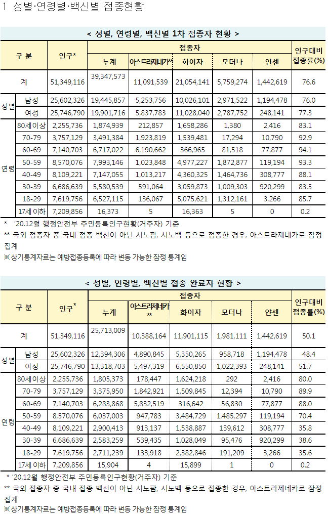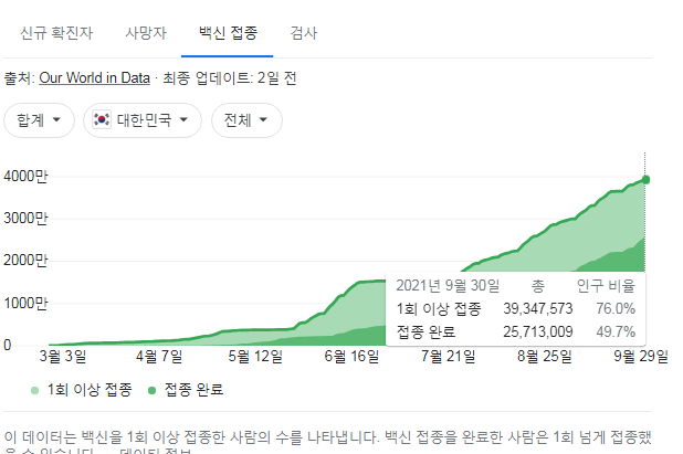 1차접종.. 인구비율 76%. 2차접종(접종완료).. 50%근접.