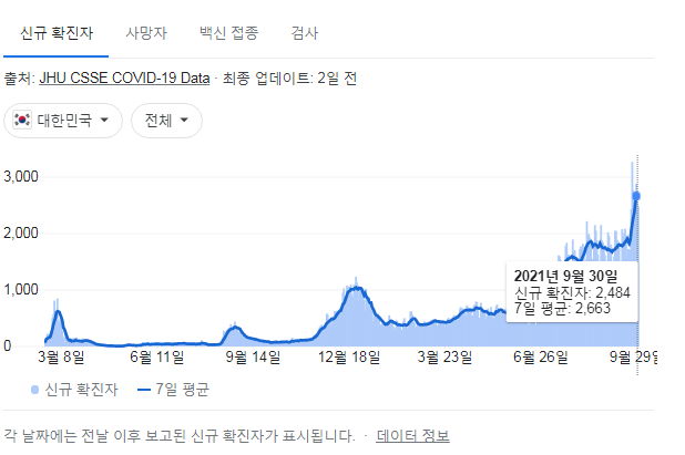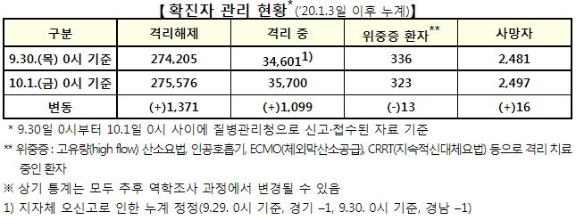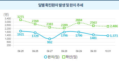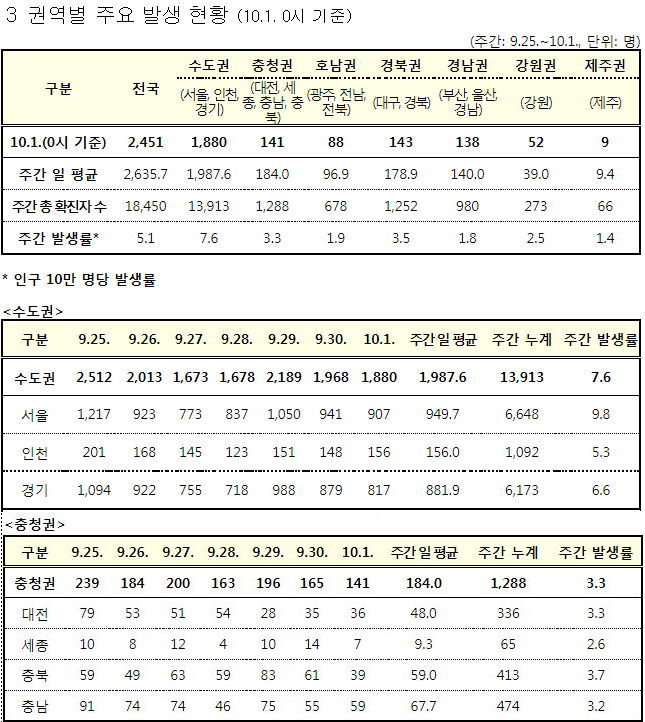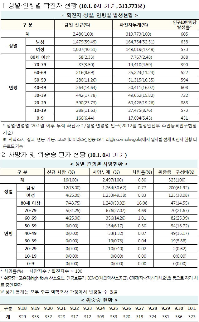 코로나19 집계(2021.10.1. 0시 기준): 2486명/:/ 향후 2주간, 현행 사회적 거리두기 단계 그대로 유지 본문
