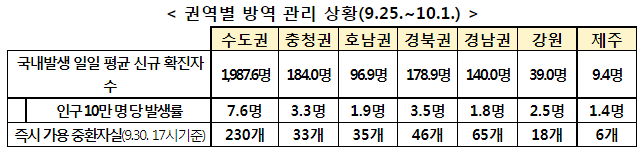 코로나바이러스감염증-19중앙사고수습본부 2021-10-01