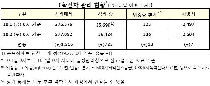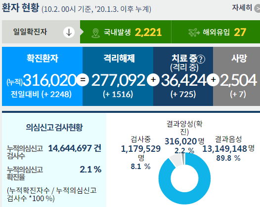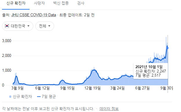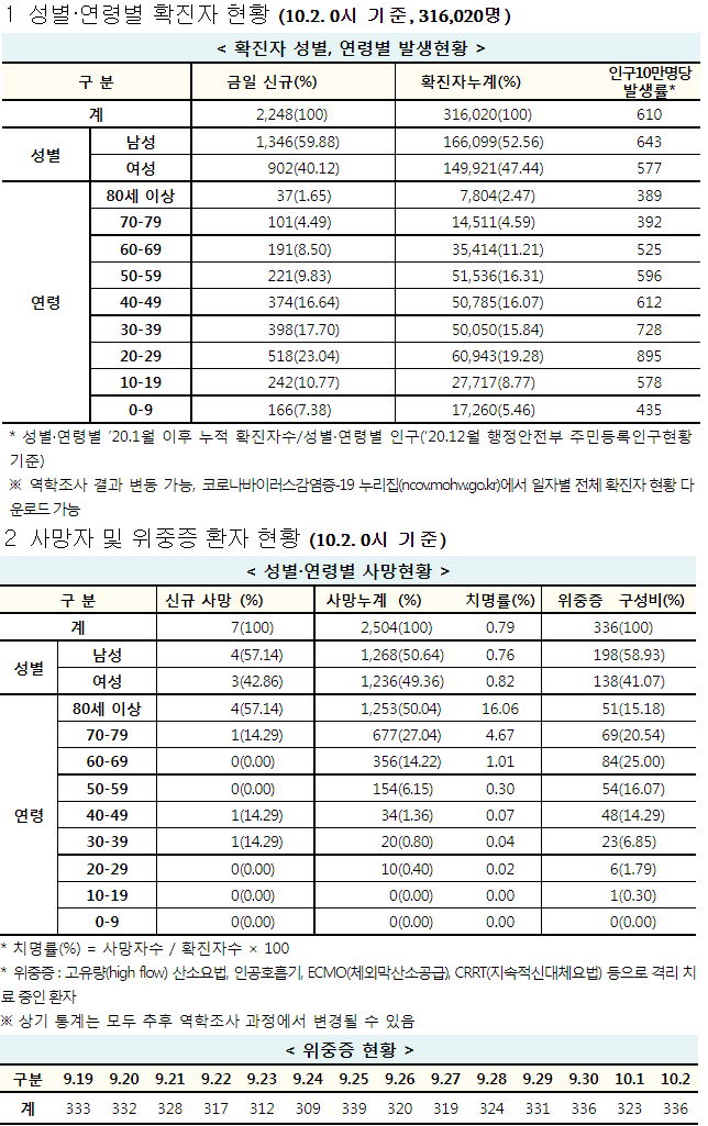 코로나19 집계(2021.10.2. 0시기준): 2248명 본문