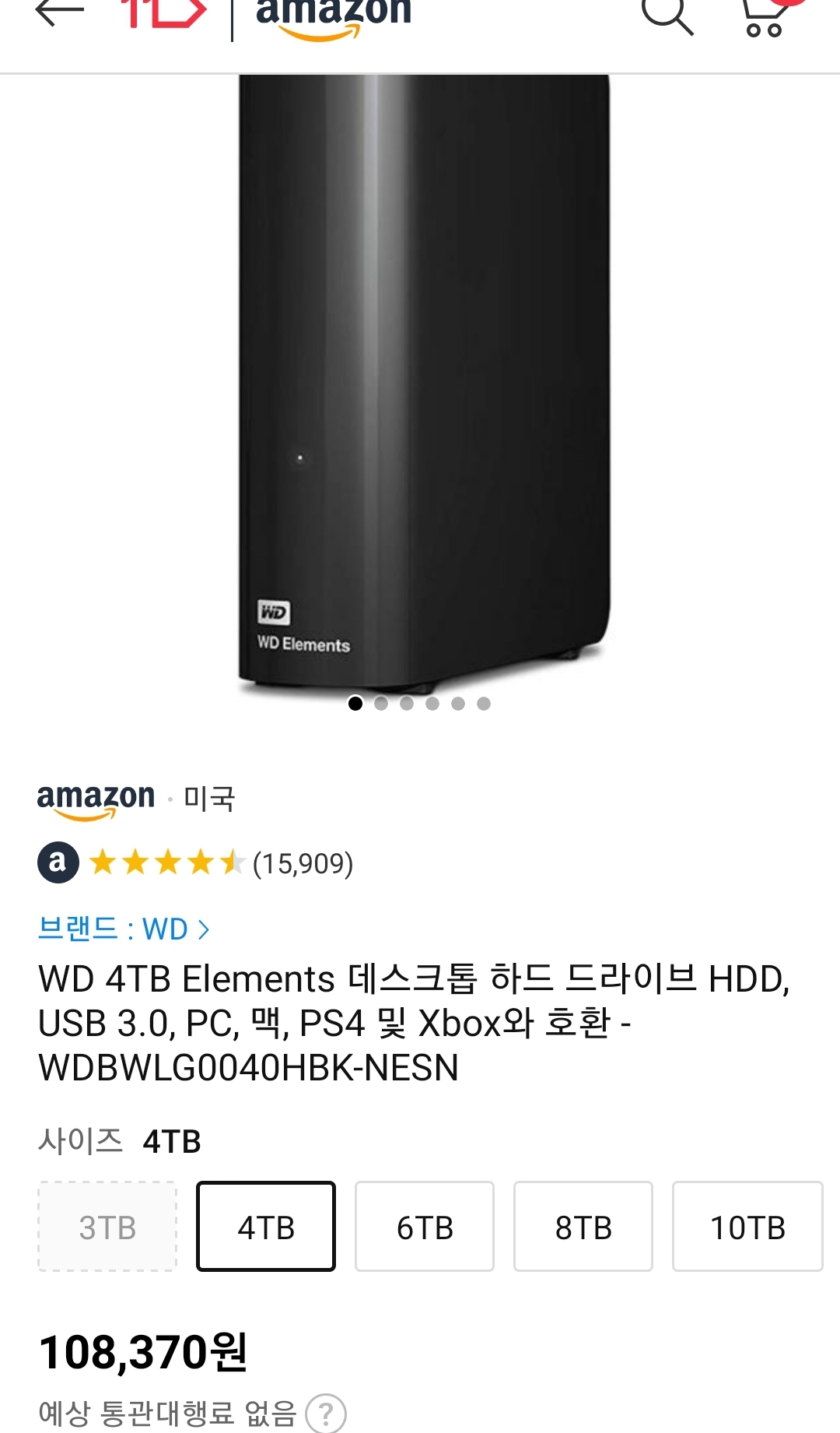 (11번가-아마존) WD 4TB 외장하드, 10.8만원 무료배송 본문