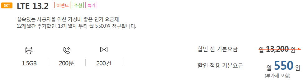12개월한정 550원, 13개월부터 5500원. 해지월 할인 미적용 일할계산