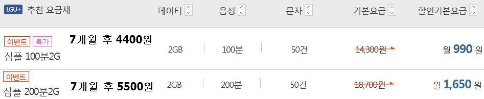 그 밖에도 2천원대에서 7천원대사이에 밸런스가 괜찮은 요금제가 많습니다.