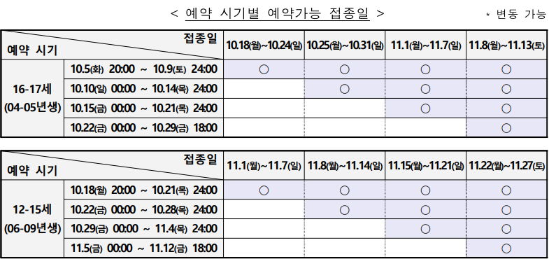 * 접종완료 후 6개월(180일) 이후 추가접종 가능