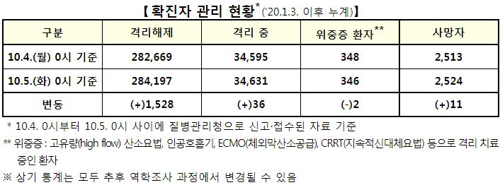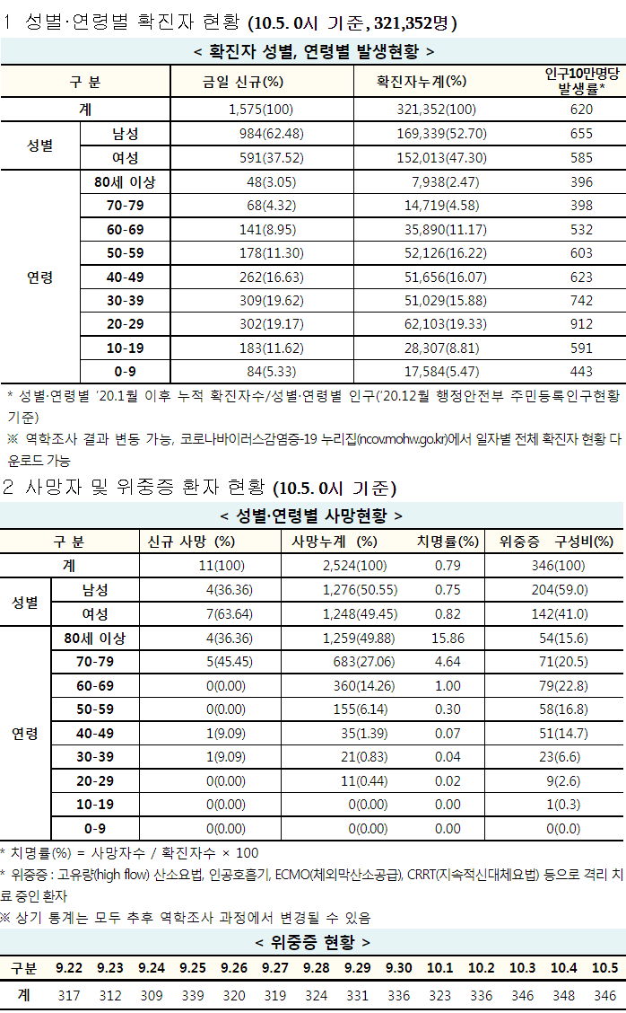 코로나19집계(2021.10.5. 0시기준): 1575명 본문
