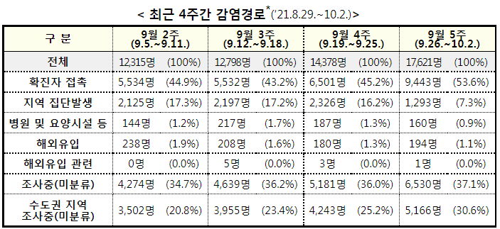 코로나19 주간 발생 현황(2021.9.26~10.2) 보도자료(2021.10.6 정례브리핑)/:/ 확진자분석, 변이바이러스 등. 본문