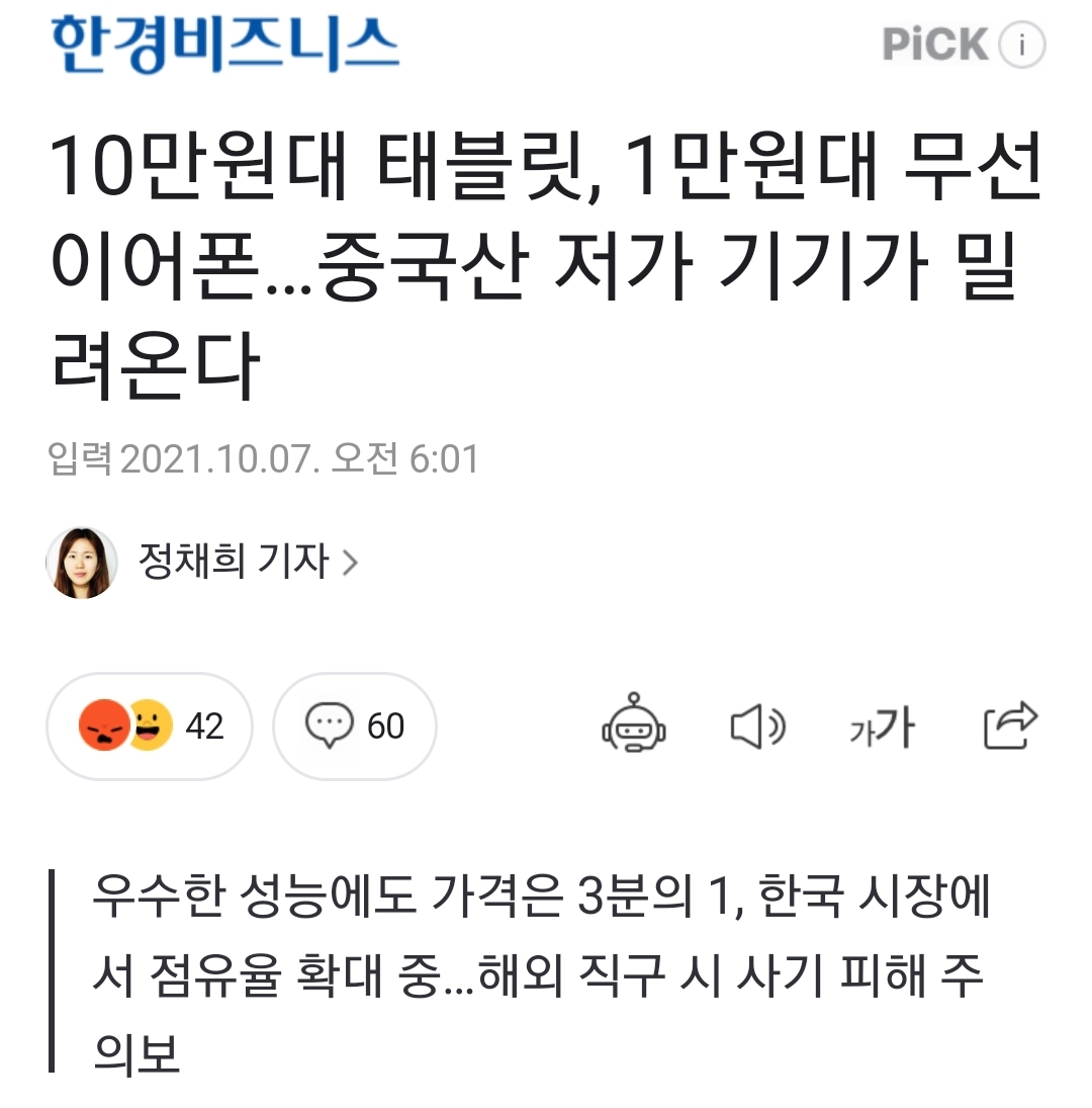 직구준비 되셨습니까?하고 묻는 듯한 기사. 기사 후반부에는 해외직구 주의점을 경고하고 있지만, 평소 중국산 it제품에 익숙해있는 사람이 보면 기사는 좀 다르게 보입니다. 이제 메이저 경제지에서도 제대로 링 위의 경쟁자로 쳐주는구나하고.