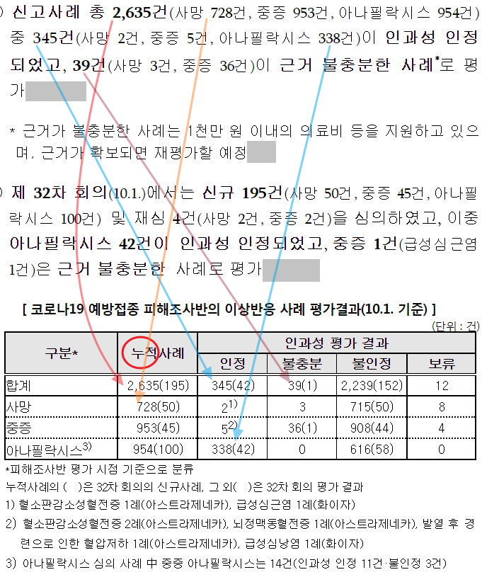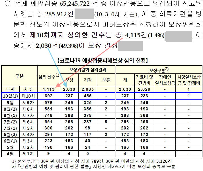 제10차 코로나19 예방접종피해보상 전문위원회 결과/예방접종 피해조사반의 이상반응 사례평가 결과 분석 (~10.1.)/:/ 2021.10.7.정례브리핑 보도자료 본문