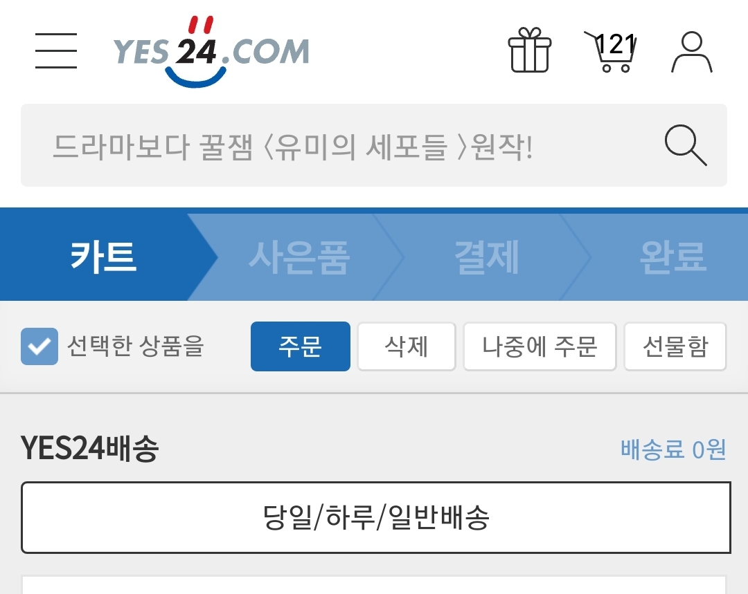 그리고 예스24는 요즘도 아이템 1개 지우면 전체 리프레쉬. 그리고 아이템갯수가 많으면 장바구니를 읽는 데 한참 걸립니다.
