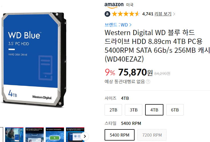 (11번가-아마존) WD블루 4TB 하드디스크(~7.5만원) 본문