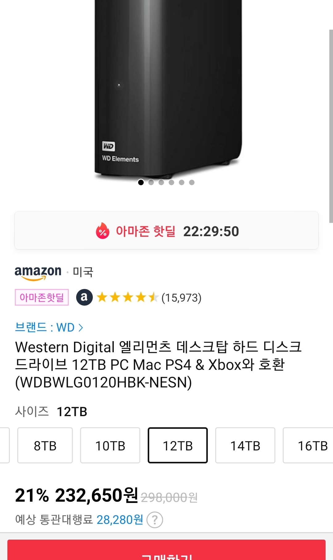 (11번가-아마존) WD 12TB 외장하드(통관비용포함 ~26만원, 추가할인있음; 최대 24~25만원 ) 본문