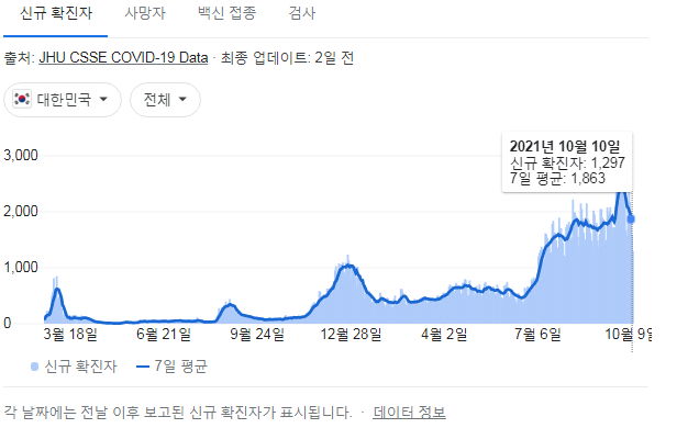 | 코로나19집계(2021.10.9. 0시기준): 1953명 (0) | 2021.10.09 |