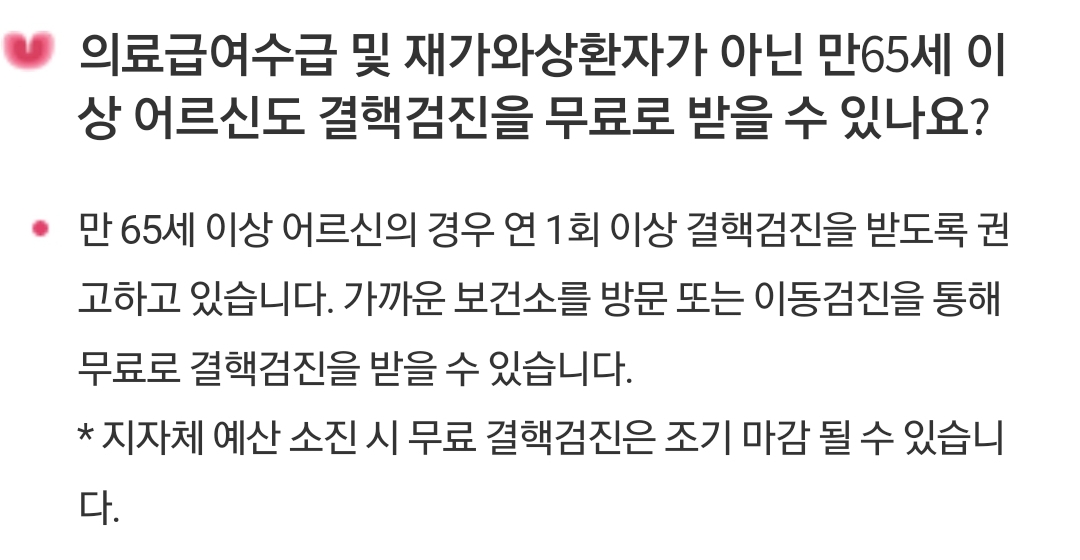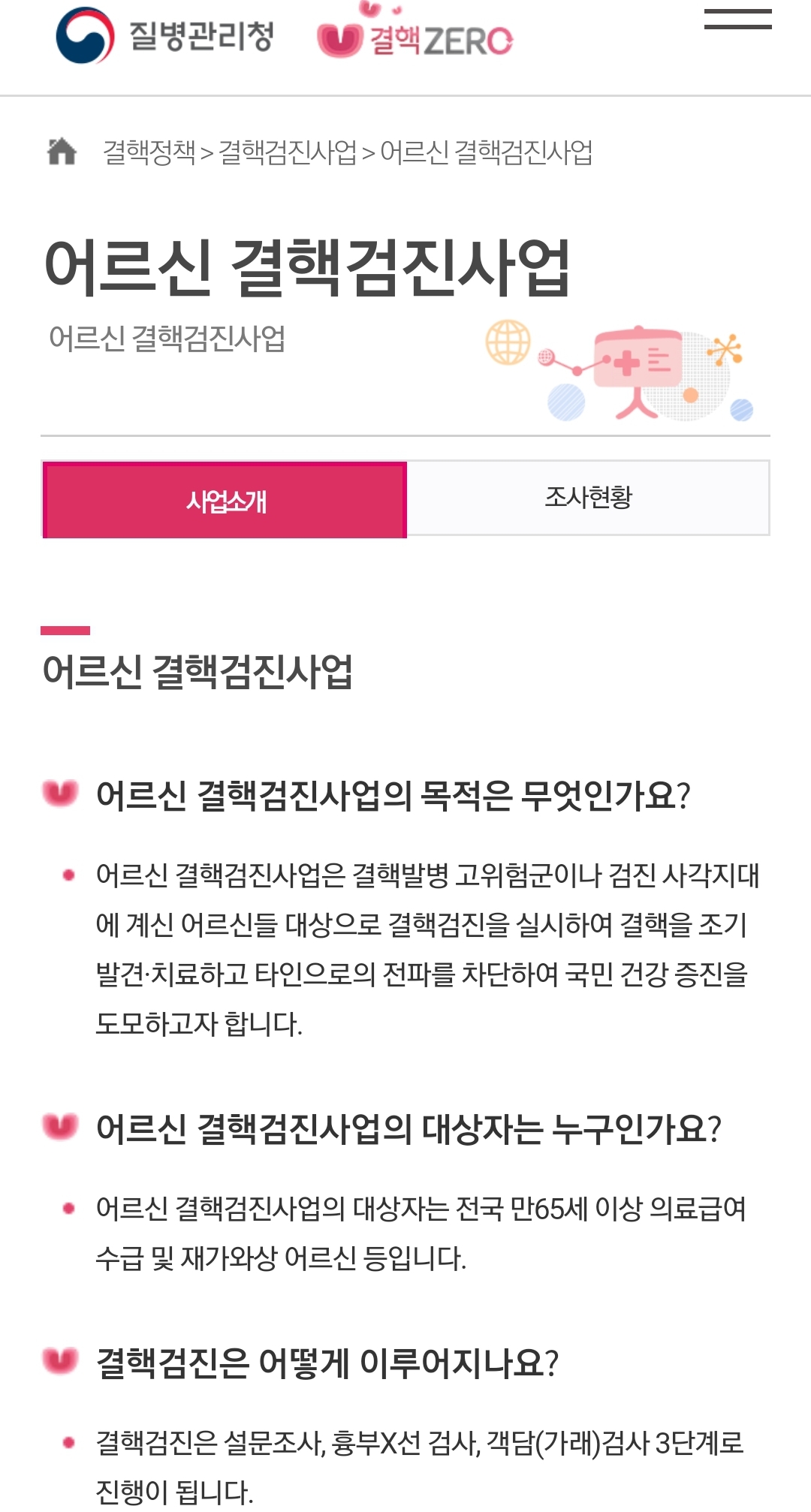 65세이상 어르신 결핵검진(매년 1회, 지역보건소 무료검진, 선착순?) 본문