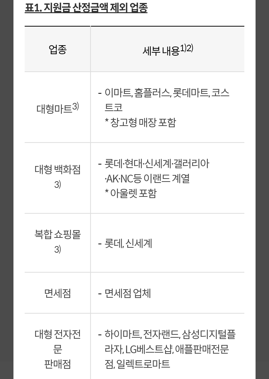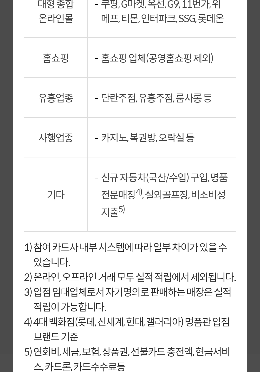 결제 합산제외도 있는데, 예를 들어 (또) 대형마트, 온라인 등 제외.