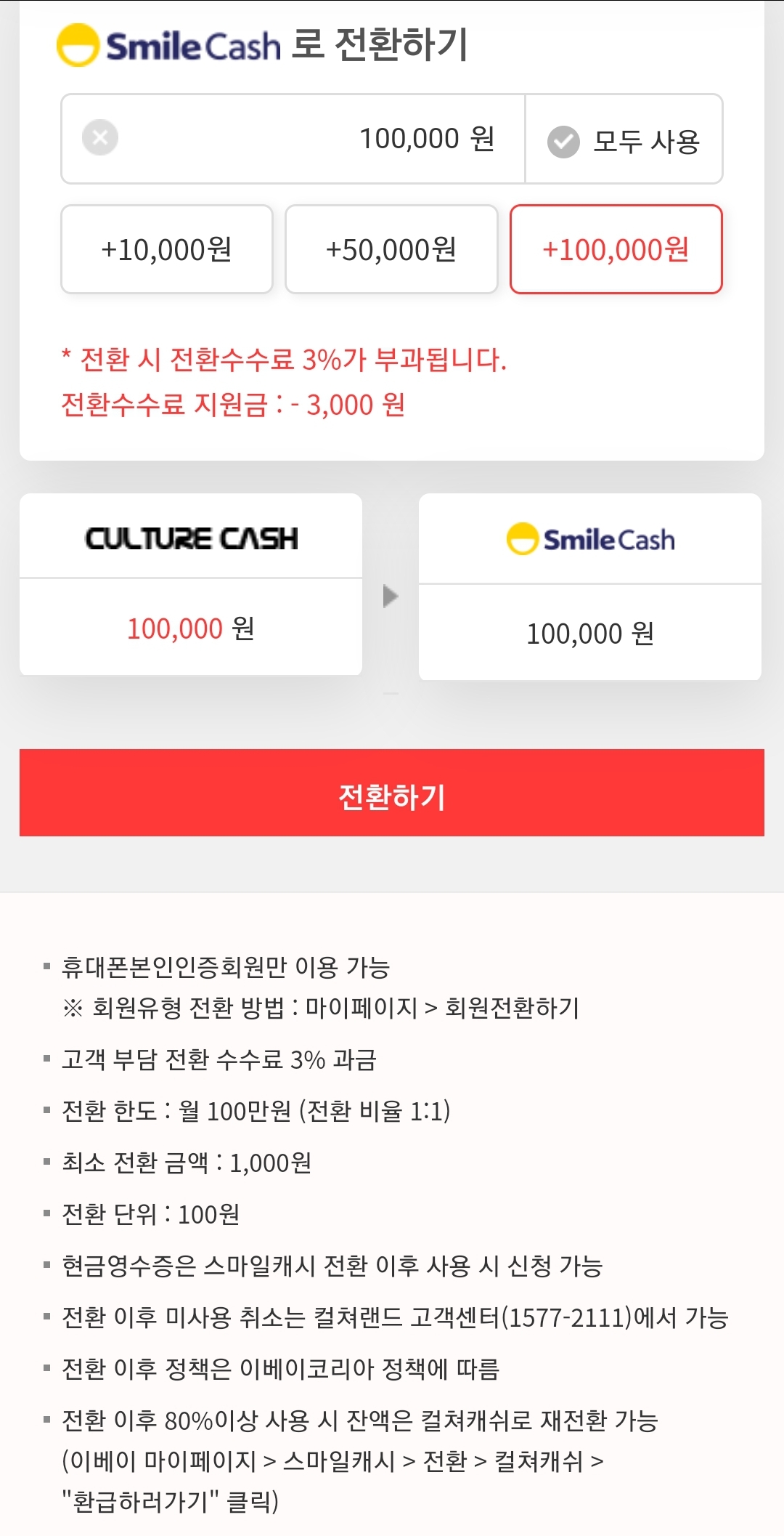 컬쳐랜드 포인트, 스마일캐시(옥션 등) 전환 수수료 무료 이벤트 본문