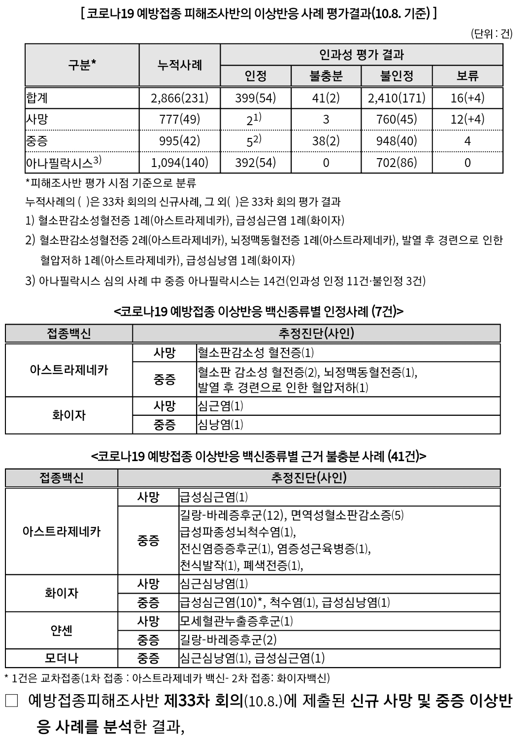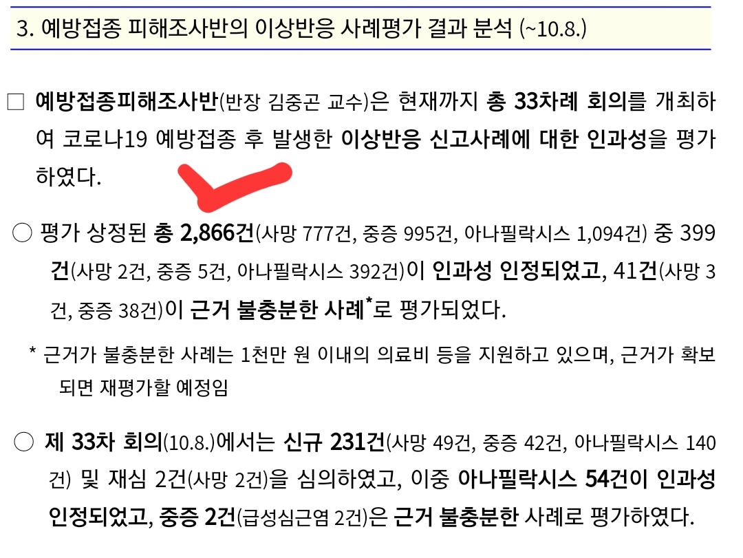 코로나19집계(2021.10.14. 0시기준): 1937명/:/ 33차 피해조사반 회의의 인과성 평가 본문