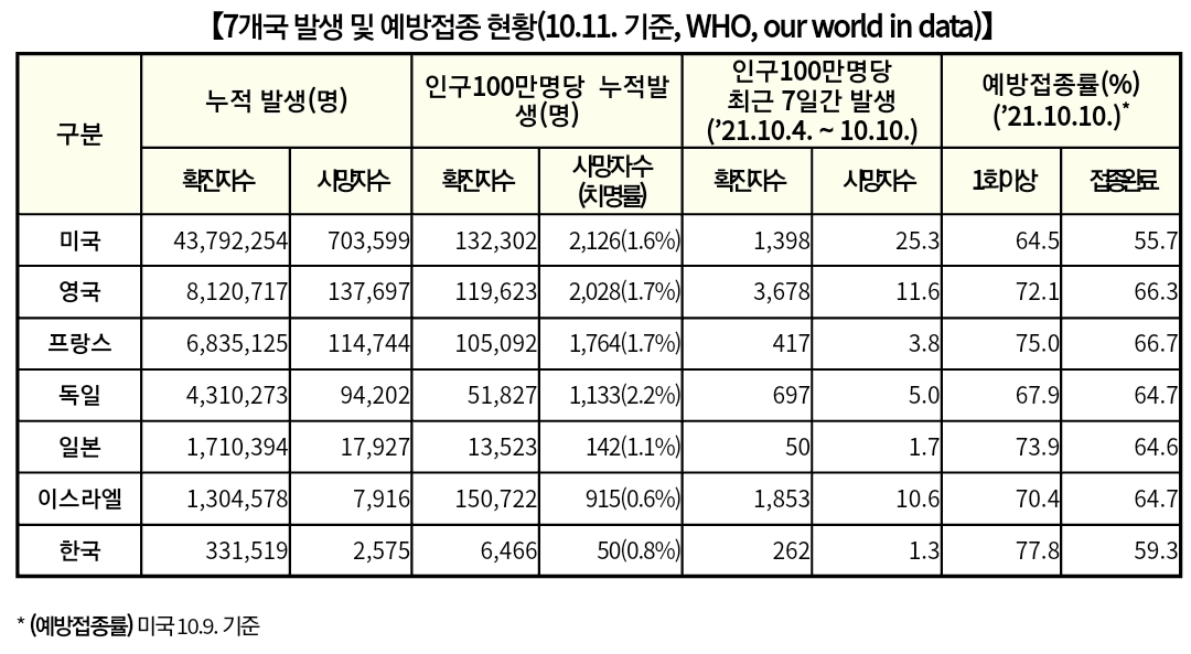| 코로나19, 주간 변이바이러스 분석/ 확진자 분석/ 예방접종효과분석 (2021.10.13. 0시기준) (0) | 2021.10.14 |