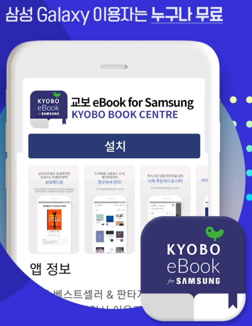 교보문고 전자책앱은 버전이 둘인데, 삼성전자 갤럭시계열 사용자는 for Samsung이 붙은 앱을 깔면 매달 한 권씩 풀리는 지정도서를 볼 수 있습니다. "북드림 받기"를 하면 다운로드가 시작되고, 180일 대여기간 카운트다운 시작.