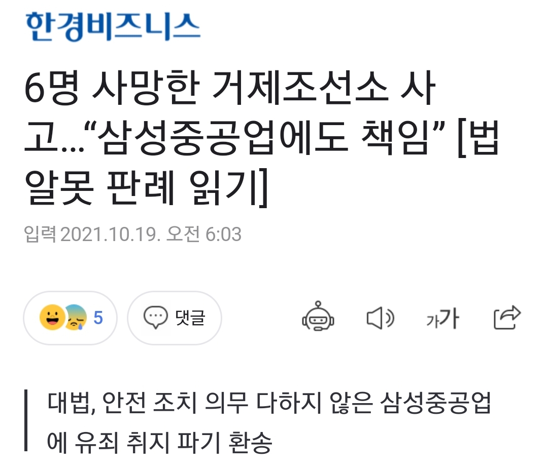 6명 사망한 거제조선소 사고…“삼성중공업에도 책임” [법알못 판례 읽기]