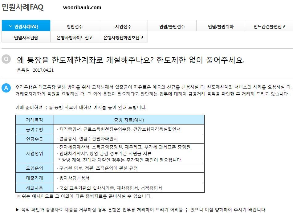 은행의 "한도제한계좌"에 대해 찾아본 것 본문