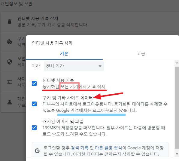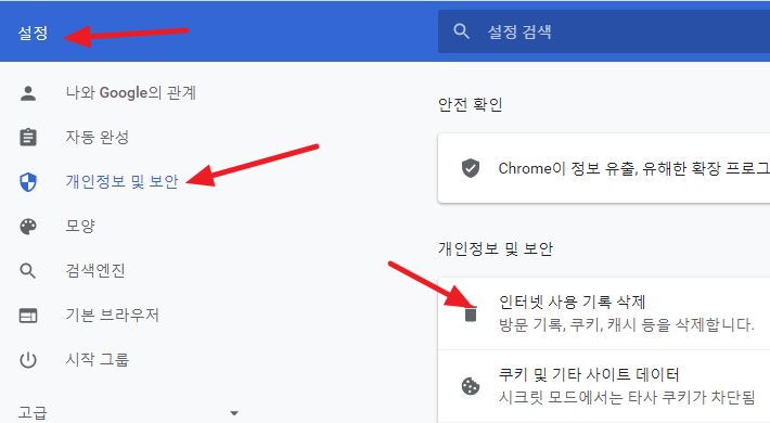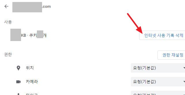 그리고 "인터넷 사용 기록 삭제" 클릭.