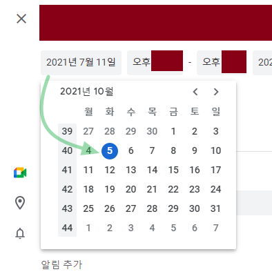 일정을 추가할 때는 오늘날짜가 자동선택돼있지만,