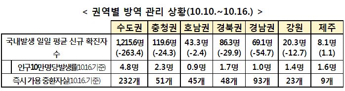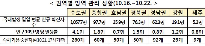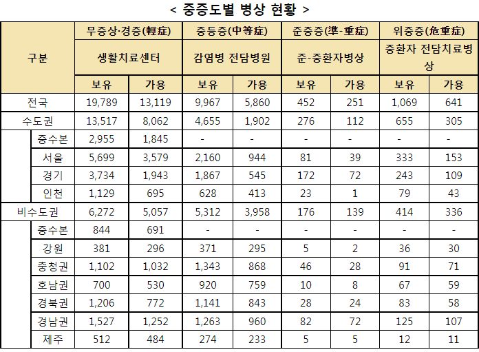 권역별 확진자발생률, 가용 중환자실, 중증도별 병상 상황