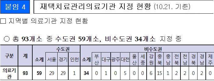 재택치료관리의료기관 지정 현황(2021.10.21)