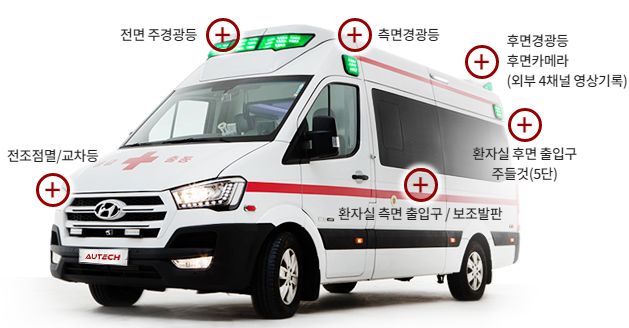 - 네비게이션과 환자실 내부, 후방 카메라와 연동 작동