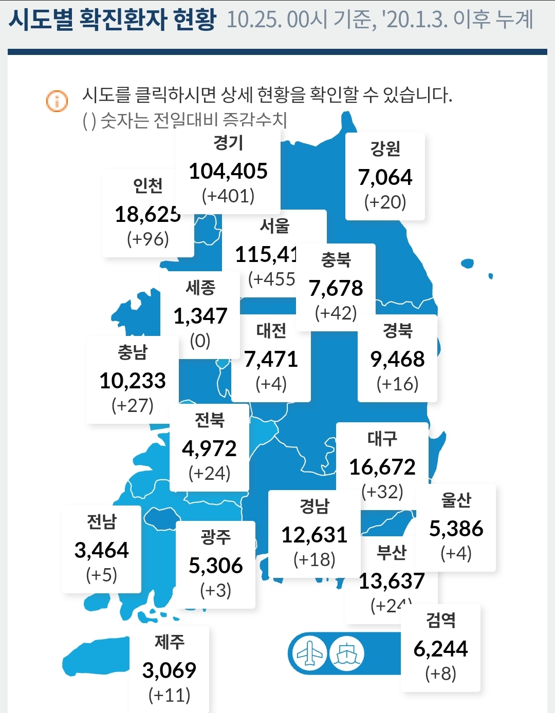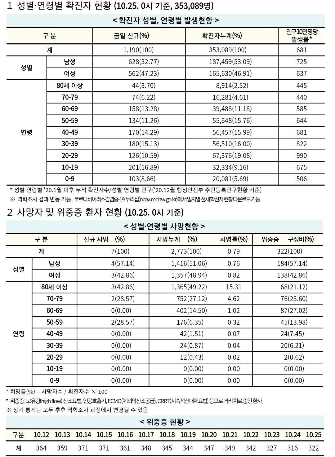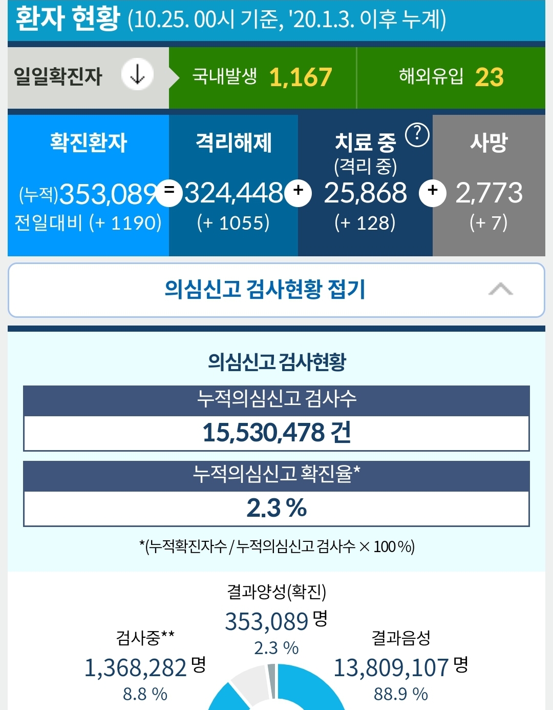 코로나19집계(2021.10.25. 0시기준): 1190명 본문