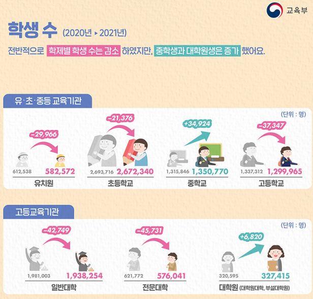 학령인구 감소에...대학 충원율 역대 최저·유초중고 600만명선 무너져 - 서울경제 2021-08-26