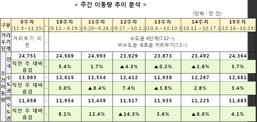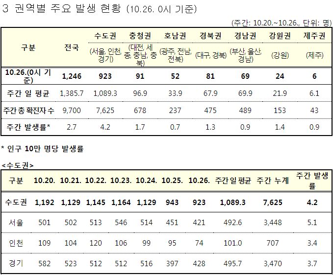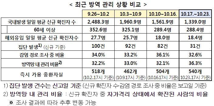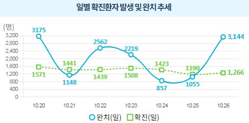 코로나19집계(2021.10.26. 0시기준): 1266명/:/ 주간 방역관리상황, 유행, 병상, 이동량통계 본문