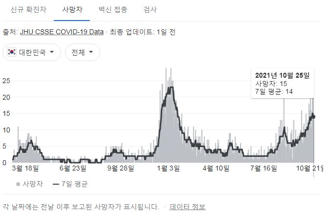 일일 신규 사망자수는 좀 곤란합니다. 위중증환자도 적지는 않습니다.