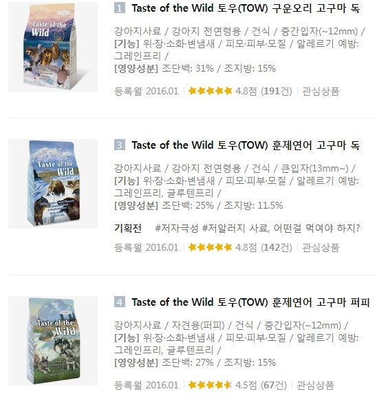 어쨌든 잘 먹고 잘 살아서 만족한다. 제품 종류는 미국 아마존사이트에 가보면 훨씬 다양하다. 하지만 사료는 무거워서 배송비가 들고, 딱히 그렇게까지 할 이유를 모르겠더라. 국내구입이 낫다.