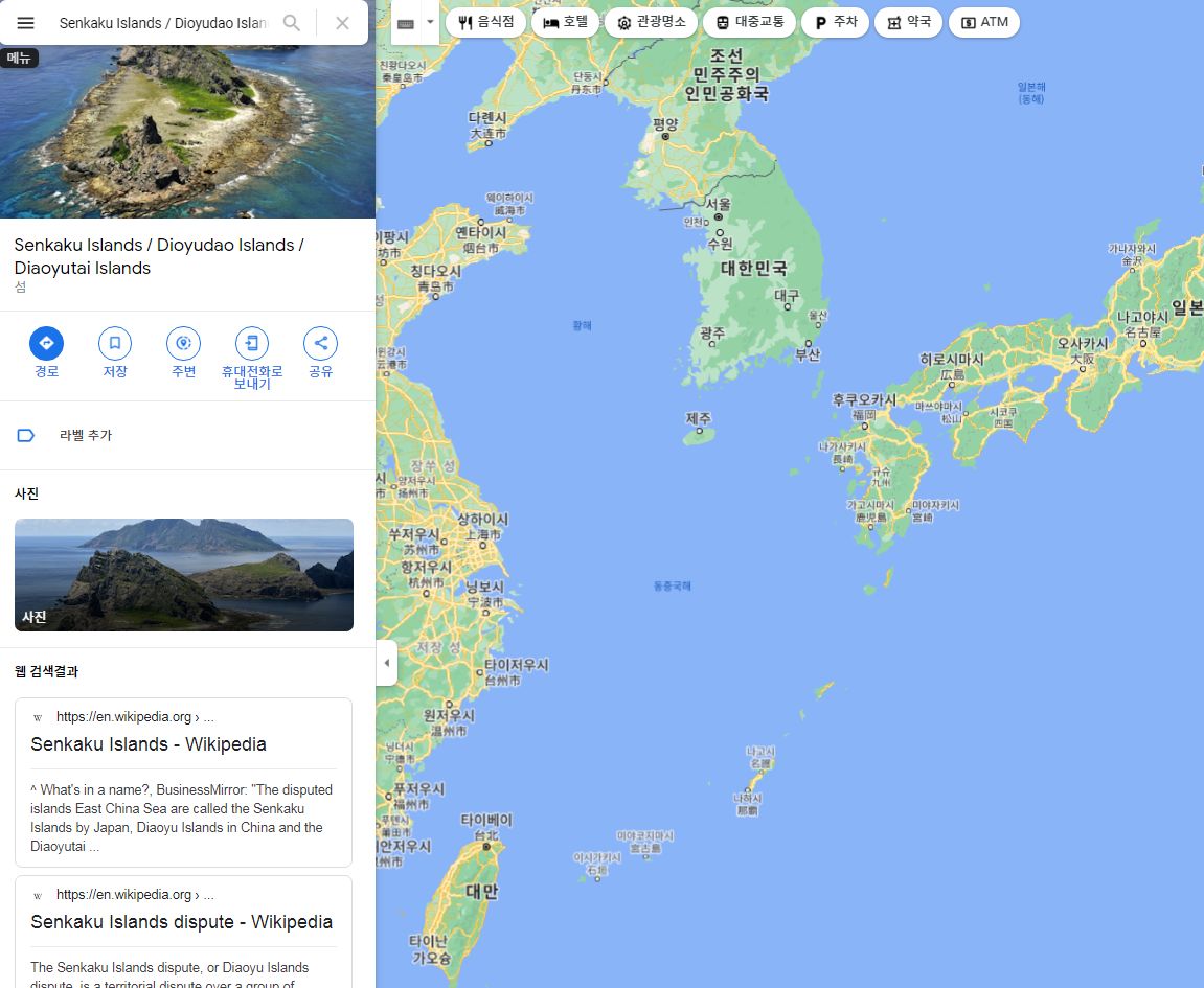 구글이 센카쿠/댜오위다오로 병기하는 섬, 구글이 독도란 이름을 아예 지워버린 섬 본문