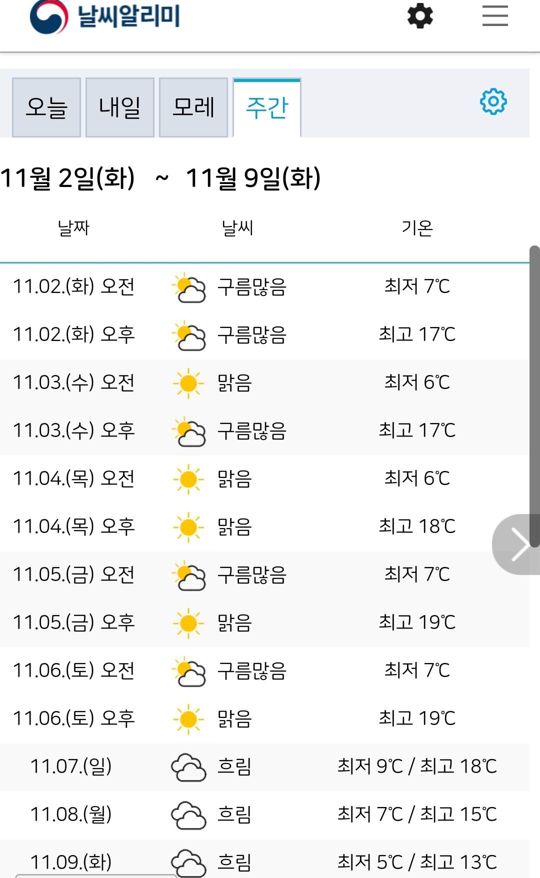 | 서울과 대전, 월요일부터 비/:/ 기상청 중기예보, 11월 중순까지 (0) | 2021.11.06 |